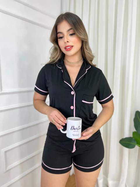 Pijama luxo preto com rosa